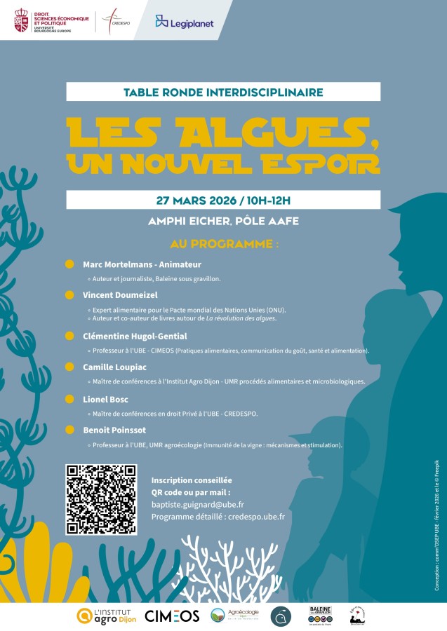 Inscription : https://www.eventbrite.com/e/billets-table-ronde-interdisciplinaire-les-algues-un-nouvel-espoir-1982494592694