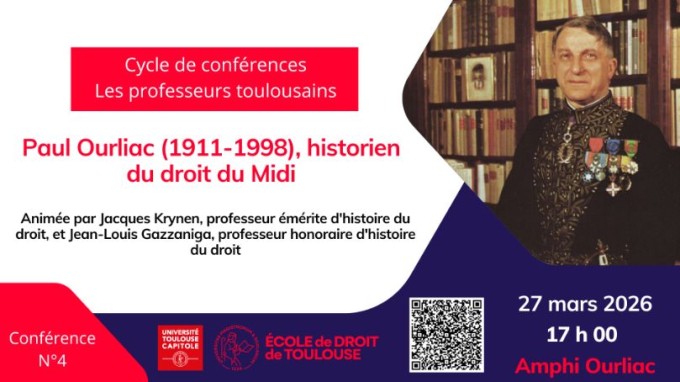 Conférence organisée par l'Ecole de droit, Université Toulouse 1 Capitole dans le cadre du cycle "Les professeurs toulousains ayant laissé leur nom aux amphithéâtres de l'Université Toulouse Capitole"