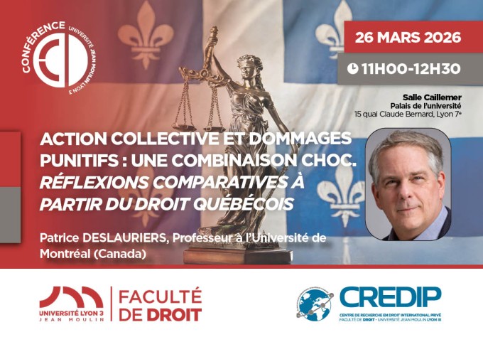 Il vient présenter cette conférence sur l'action collective et les dommages punitifs, en apportant un regard comparé avec le droit québécois.