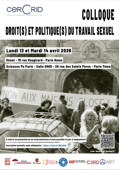 Inscription gratuite mais obligatoire en bas de page : https://cercrid.univ-st-etienne.fr/fr/tout-l-agenda/actualites-2025-2026/toutes-les-actualites-2025-2026/colloque-droit-s-et-politique-s-du-travail-sexuel.html