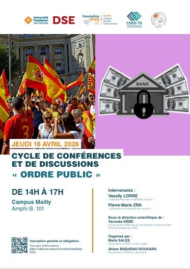 Conférence du CDED YS, Université de Perpignan Via Domitia organisée sous la direction scientifique de Monsieur Yacouba Kébé, Doctorant en droit privé et sciences criminelles, par Madame Marie Sales, Doctorante et ATER en droit public et Madame Ahlam Baghdad Doukara, Doctorante et ATER en droit privé et sciences criminelles