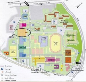 Venir à Paris-Ouest-Nanterre La DéfensePrendre la ligne A du R.E.R., direction Saint-Germain-en- Laye, et descendre à la station "Nanterre-Université", sortie « rue de la Folie / Paris X » Plan du campus