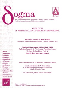 AnzilottiLe prisme italien du droit international Autour du livre du Pr Denis Alland, Anzilotti et le droit international public. Un essai, Pedone, 2012