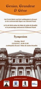 Fin de Siècle, een eyeopener zijn tot deze boeiende periode uit het Belgisch verleden. Het symposium biedt ook een unieke gelegenheid om kennis te maken met de weinig gekende negentiende- en begin twintigste-eeuwse kunst die zich, verspreid over de zalen, gangen, hoeken en kanten, bevindt in het Brusselse Justitiepaleis van Poelaert, waarvan Picard de bouw meemaakte en waarover hij in lyrische bewoordingen schreef. Op die manier wordt ook getracht bij te dragen tot de hoognodige herwaardering van dit imposante monument. Terzelfder tijd wordt, vertrekkend van enkele publicaties van Edmond Picard, van gedachten gewisseld over enkele aspecten van wat in de voorbije 150 jaar substantieel veranderd is in de advocatuur en het juridisch schrijven en, vooral, van wat overeind is gebleven. Le symposium