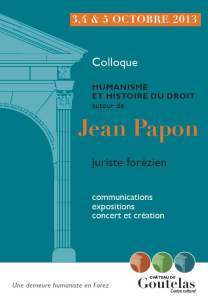 Goutelas3, 4 et 5 Octobre 2013 PrésentationÀ partir de l’oeuvre et de la personne de Jean Papon, le colloque portera un regard rétrospectif et prospectif sur le thème de l’humanisme juridique: Douze communications associeront les points de vue de l’histoire, de l’histoire du droit, de la littérature, de la philosophie et du droit contemporain. Comment l’oeuvre de Jean Papon, juriste forézien, éditée à Lyon, témoigne-t-elle de la reconstruction humaniste du droit au XVIe siècle ? Cette oeuvre singulière, qui trouve des échos dans d’autres oeuvres de juristes, permet aussi d’interroger les rapports de l’humanisme avec le pouvoir et la politique des Etats. Une table ronde conclura le colloque en y introduisant les enjeux actuels d’une pratique humaniste du droit et les défis que la mondialisation lance à l’humanisme juridique. Marie-Claude MIOCHE Antoine JEAMMAUD Centre culturel de Goutelas Colloque est organisé par le Centre Culturel de Goutelas en partenariat avec l’Institut Claude Longeon (Université Jean Monnet), le GRAC (Université Lyon 2) et le CERCRID (Université Saint-Etienne).