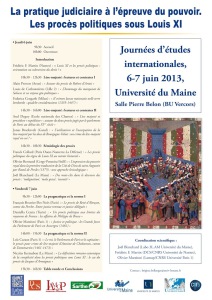 Jeudi 6 juin 20139h30. - Accueil10h. - OuvertureIntroduction- Frédéric F. Martin (Nantes): Louis XI et les procès politiques: orientation ou subversion du droit?