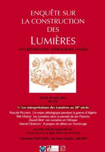 MontpellierJeudi 30 mai 2013 (9h-17h)1/ Les interprétations des Lumières au 20e siècle P. PELLERIN, P. HORAK, D. DIOP, M. DORIGNY