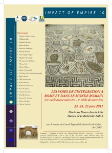 16h10. - Pause café - 16h30. - Adrien Tondeur (doctorant, Lille 3, Halma-Ipel), La prédominance de l’élément romain au sein des auxilia: un facteur d’intégration? Le cas des unités originaires des Tres Galliae