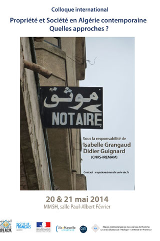 Mercredi 21 mai 2014Séance 3 : Processus d’appropriation - 8h45-12h30 Présidée par Saïd BELGUIDOUM (AMU, IREMAM, Aix-en-Provence)- Khedidja KRIMI (Université d’Alger), Application du droit foncier colonial chez les Beni Menasser et dans les tribus des Isser.