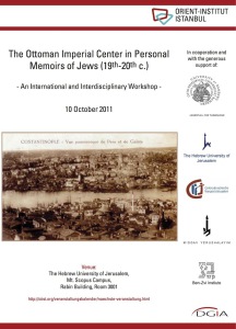 Source: « The Ottoman Imperial Center in Personal Memoirs of Jews (19th-20th c.) », Journée d'étude, Calenda, publié le vendredi 06 avril 2012, http://calenda.revues.org/nouvelle23566.html