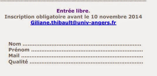 Inscription obligatoire avant le 10 novembre 2014Giliane.thibault@univ-angers.frNom …………………………………………………………….Prénom …………………………………………………………Mail ………………………………………………………………Qualité ………………………………………………………….