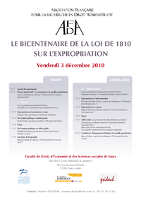 Journée d'étude Le bicentenaire de la loi du 8 mars 1810 sur l’expropriation