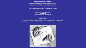 Programme- Séance 3, le Mercredi 12 décembre 2012 : Regis Ponsard, «La place de l’État dans l’élaboration d’une science du droit» , 17h30-19h30, (45 rue d’Ulm, Paris 5e, salon du restaurant). Entrée libre