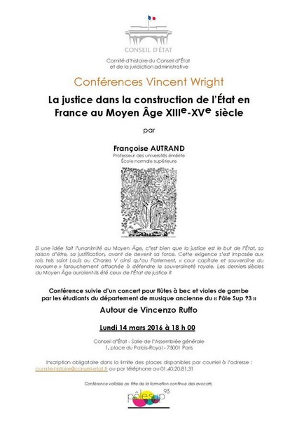 Conférence - La justice dans la construction de l’État en France au Moyen Âge - 14 mars 2016