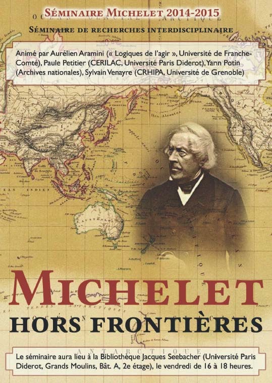 C’est à partir de l’examen de ce débordement des frontières, tant épistémologiques que géographiques ou littéraires, que le séminaire Michelet voudrait entamer l’exploration sur nouveaux frais d’un historien et d’un écrivain au rôle majeur dans la constitution des sciences humaines actuelles.