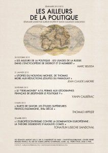 - 30 octobre 2012: Marc Belissa, Les ailleurs de la politique : les usages de la Russie dans l’Encyclopédie de Diderot et d’Alembert.