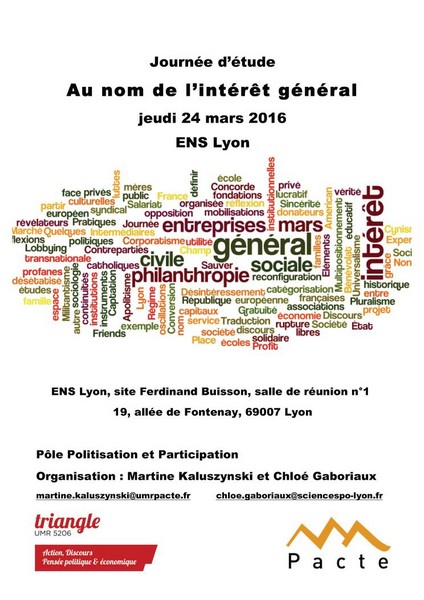 Journée organisée par les laboratoires Triangle – UMR 5206 (ENS Lyon) et PACTE (SciencesPo Lyon)