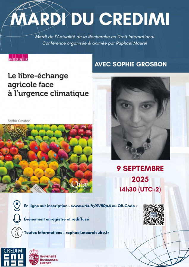 Les MARDI du CREDIMI (Mardi de l’Actualité de la Recherche en Droit International) sont un cycle de webinaires organisé par Raphaël Maurel autour de l’actualité de la recherche en droit international.