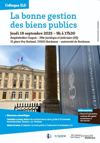 Colloque organisé par l'ILD, Université de Bordeaux sous la direction scientifique de Clothilde Le Guay, Maître de conférences en droit public à l’Université Versailles Saint-Quentin-en-Yvelines et Alain Pariente, Professeur de droit public à l’Université de Bordeaux, ILD