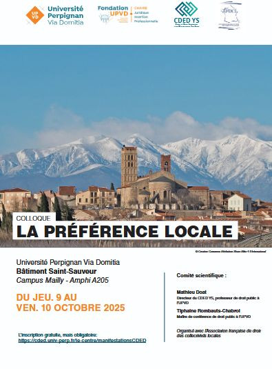 Colloque organisé par le CDED, Université de Perpignan sous l'égide de l'Association française de droit des collectivités locales (AFDCL) et sous la direction scientifique de Mathieu Doat, Directeur du CDED YS, professeur de droit public à l’UPVD & Tiphaine Rombauts-Chabrol, MCF de droit public à l’UPVD