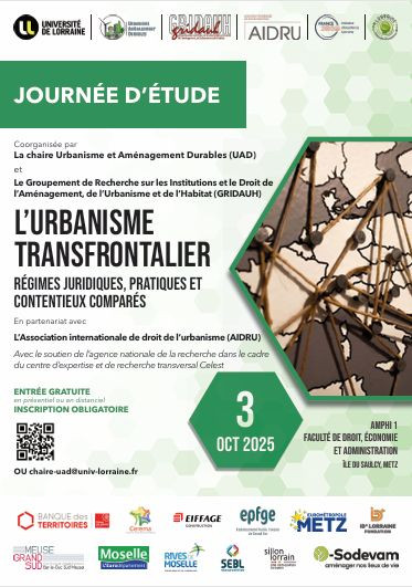 Journée d'étude organisée par le GRIDAUH et la Chaire Urbanisme et Aménagement Durables, Université de Lorraine en partenariat avec l’Association internationale de droit de l’urbanisme (AIDRU) et avec le soutien de l’agence nationale de la recherche dans le cadre du centre d’expertise et de recherche transversal Celest