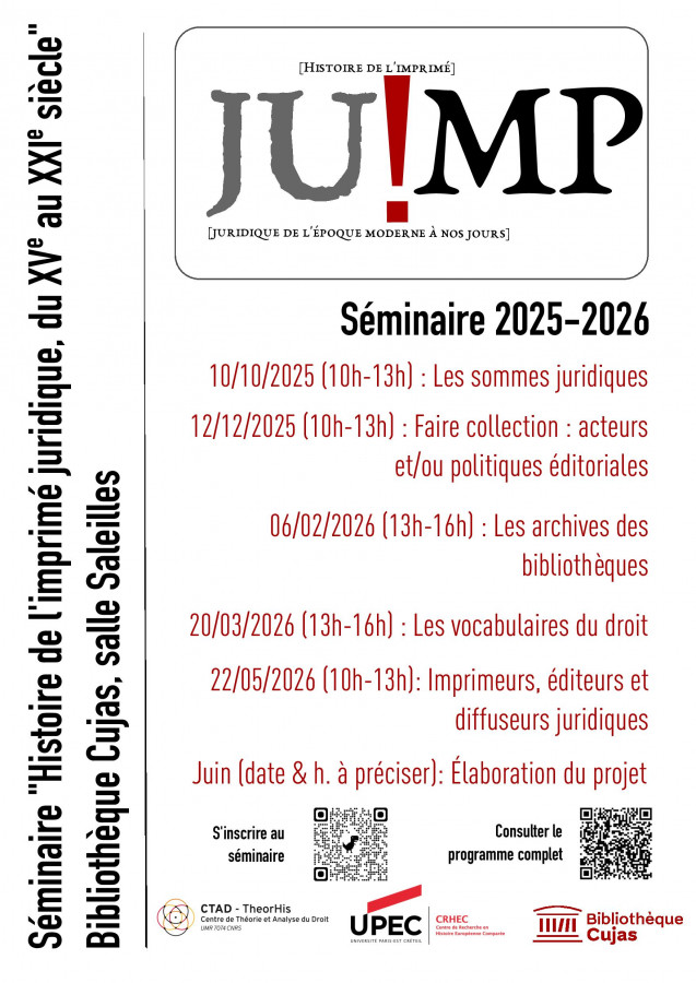 Séminaire JU!MP organisé par le CTAD, UPEC, CRHEC et la Bibliothèque Cujas