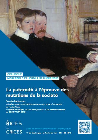 Colloque organisé par l'ICES, Institut catholique de Vendée sous la direction scientifique de Isabelle Corpart, MCF (HDR) émérite en droit privé à l’Université de Haute-Alsace et Augustin Boulanger, MCF en droit privé de l’ICES, Chercheur associé au CDED YS (EA 4216)