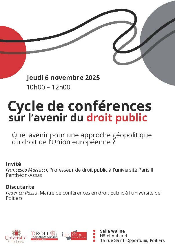 Conférence organisée par l'Institut de droit public (IDP), faculté de droit, Université de Poitiers dans le cadre du cycle de conférences sur "L’avenir du droit public" sous la direction scientifique de M. Lilian Dailly, Maître de conférences en droit public.