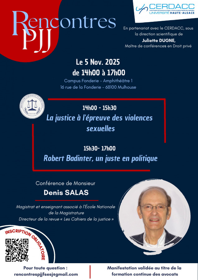 Conférence organisée par le CERDACC, Université de haute Alsace sous la direction scientifique de Juliette Dugne, Maître de conférences en Droit privé dans le cadre des Rencontres PJJ