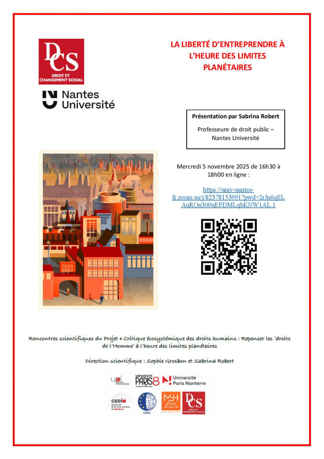 Lien ZOOM : https://univ-nantes-fr.zoom.us/j/82378153991?pwd=2rJn6qELAuROn300uEPDMLqbKNW1AL.1