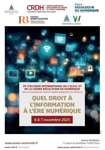 19e Colloque international organisé par le CRDH et la Chaire Régulation du numérique, Université Paris Panthéon-Assas avec le concours de l’Institut Robert Badinter et de l’École W